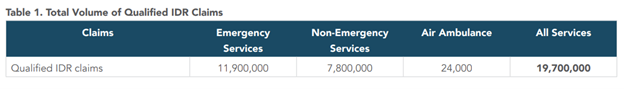 Table 1 from “New AHIP/BCBSA Survey Finds Providers are Flooding IDR System with Ineligible Disputes”